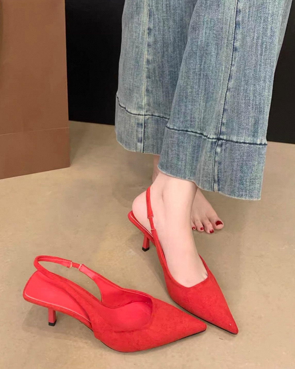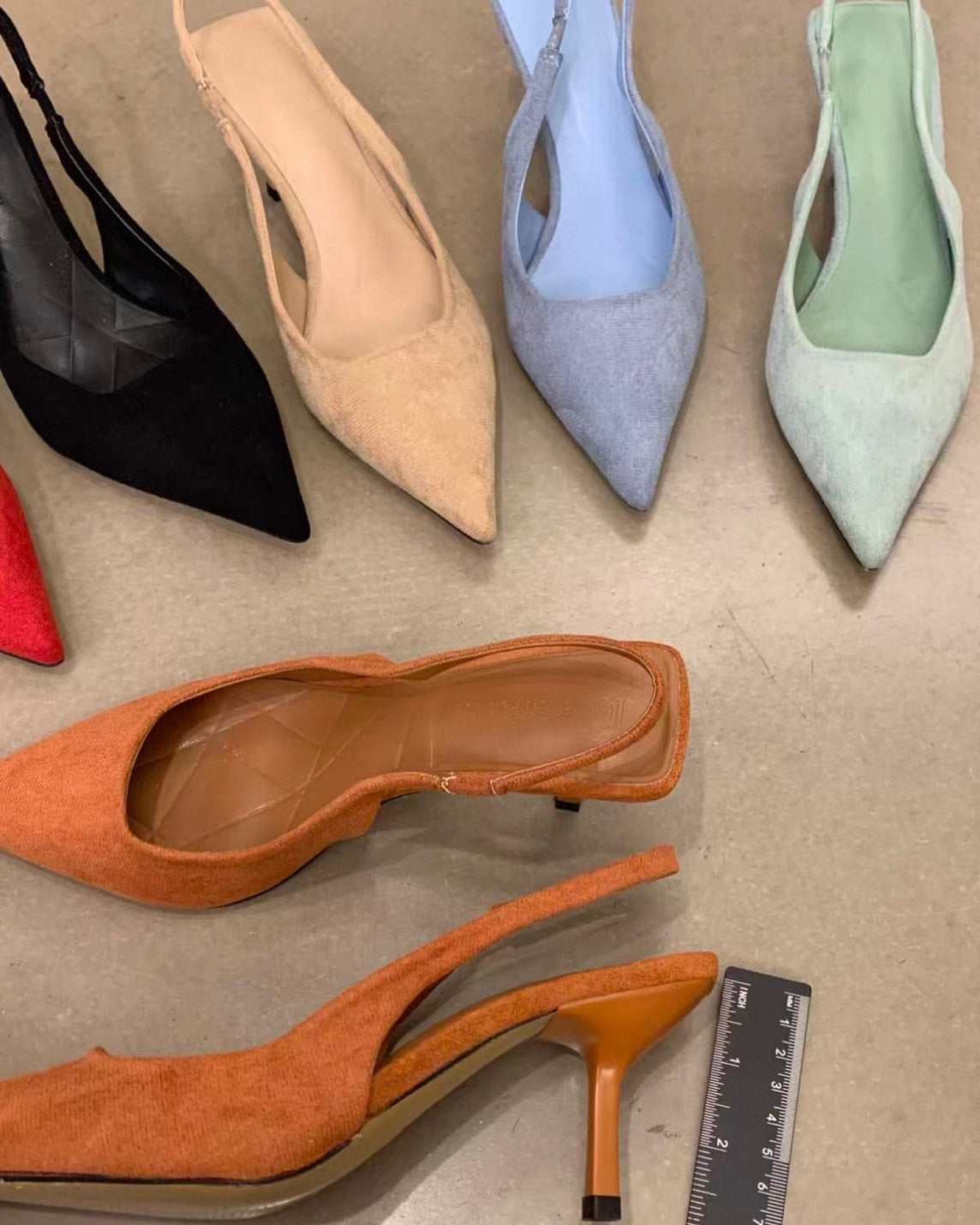 足元から一気に“洗練された女性”を演出する、ミニマルデザインのスリングバックパンプス。