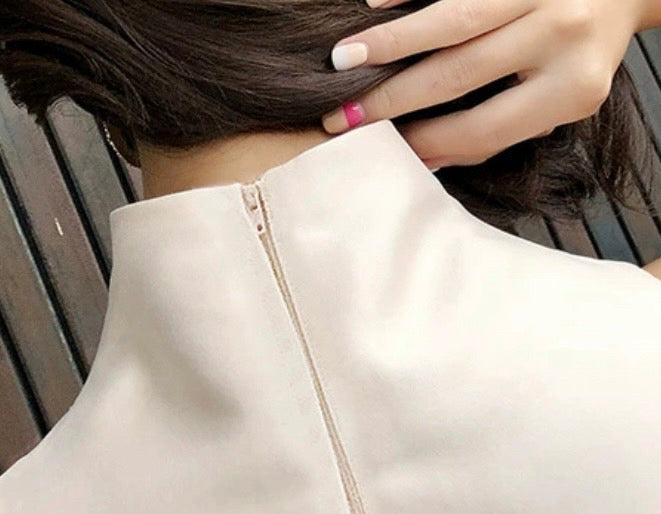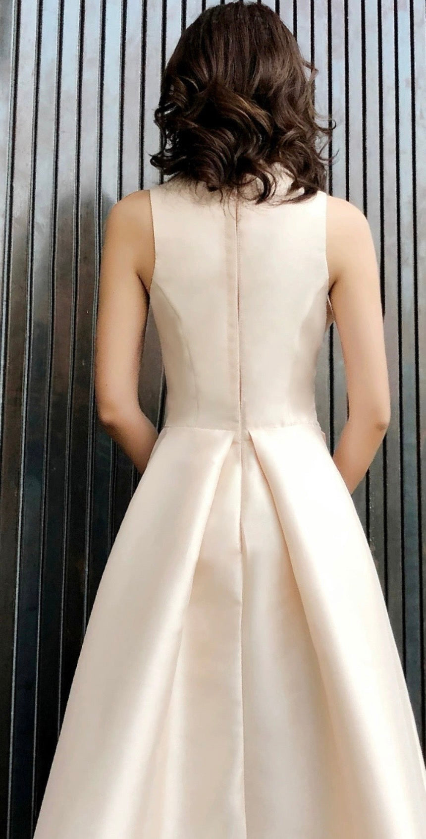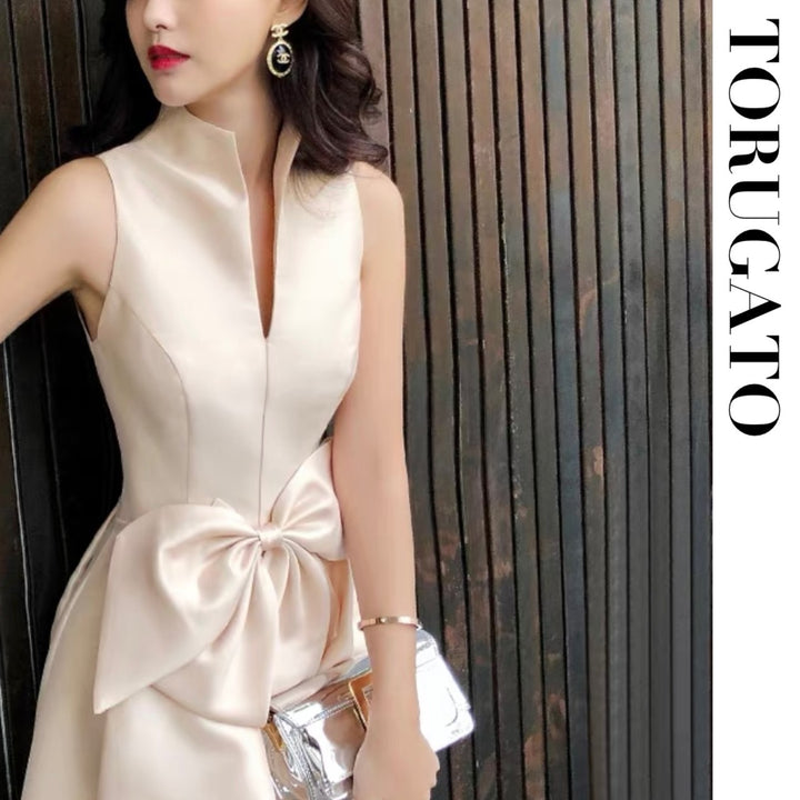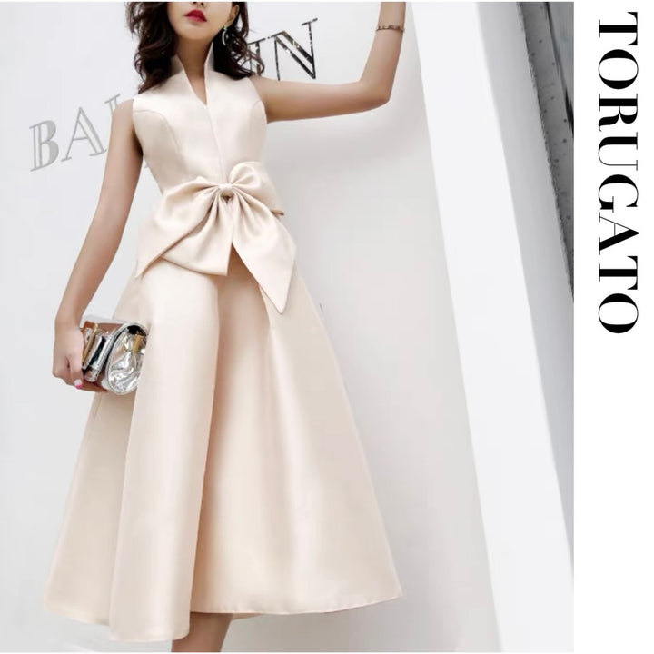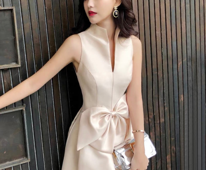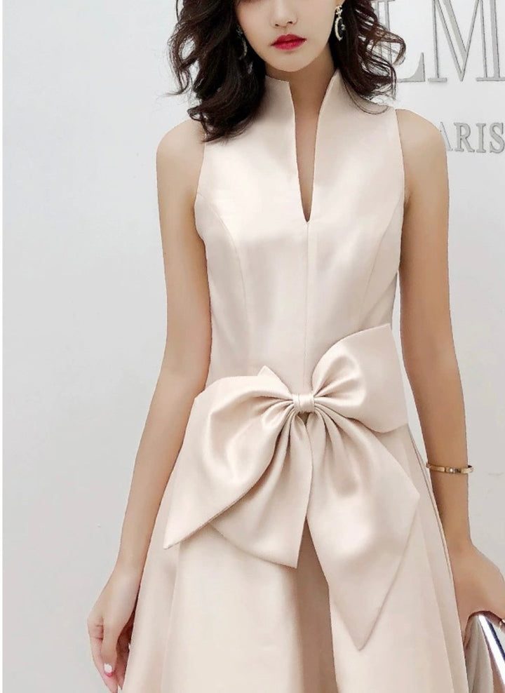 A dress dress that focuses on the silhouette with a ribbon in the center.