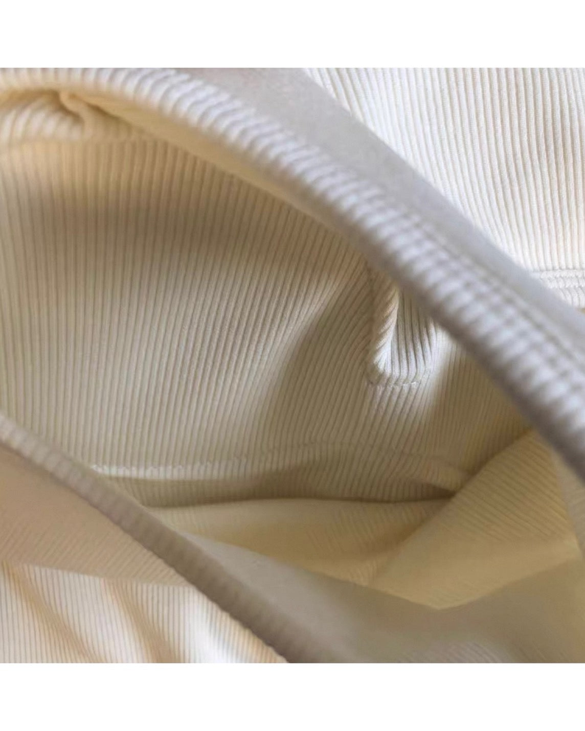 程よい厚みのあるリブ素材がボディラインにフィットし、インナーなしでも安心のパッド付き仕様。