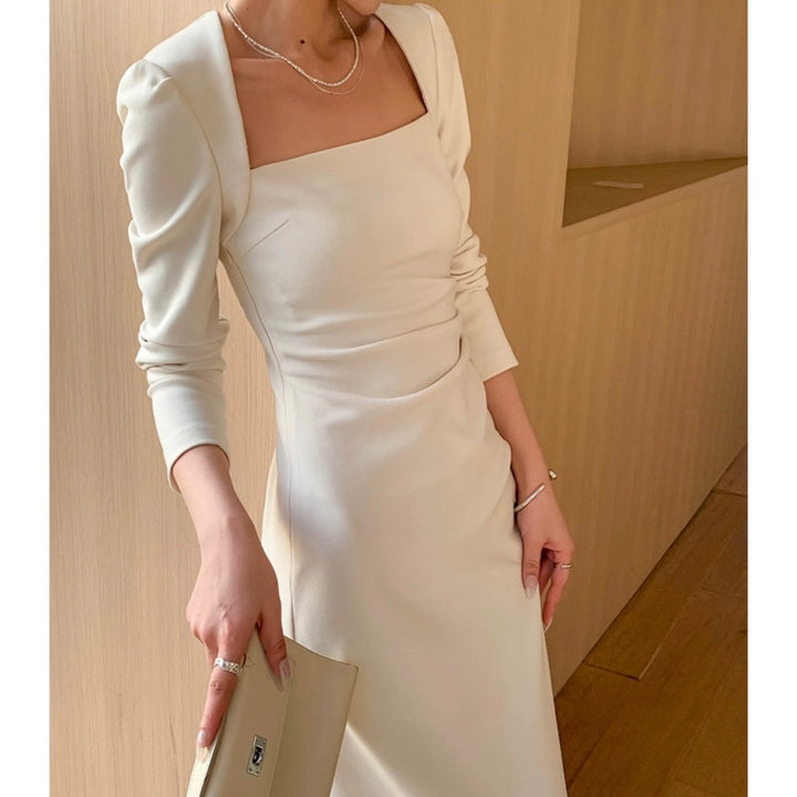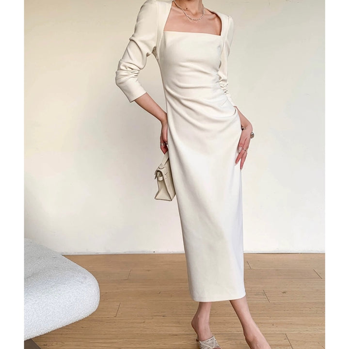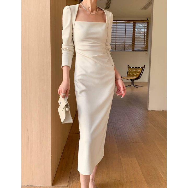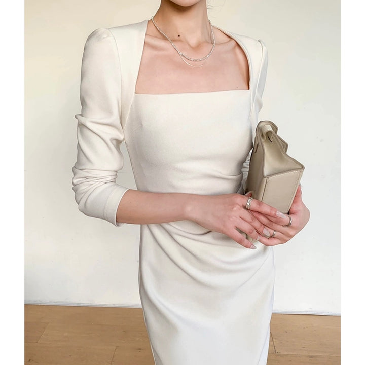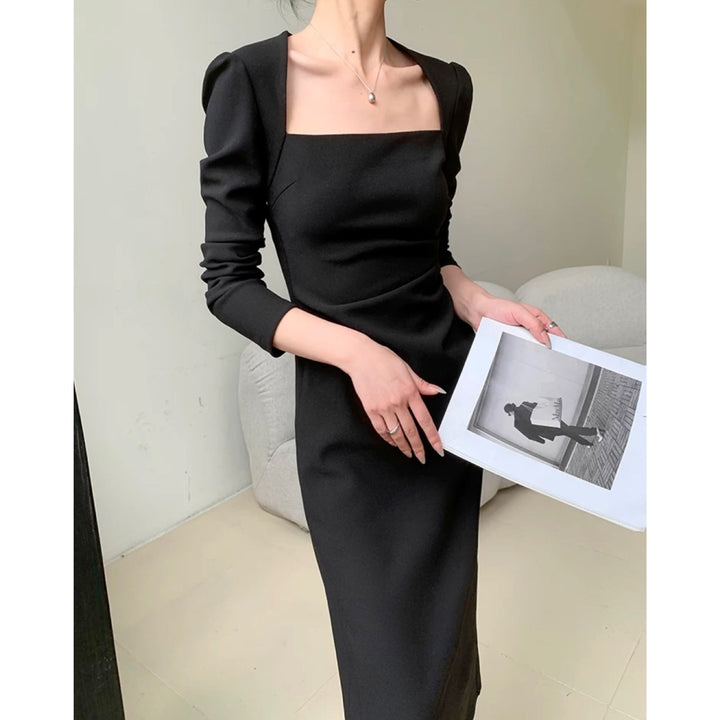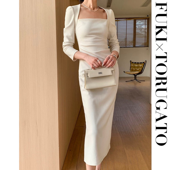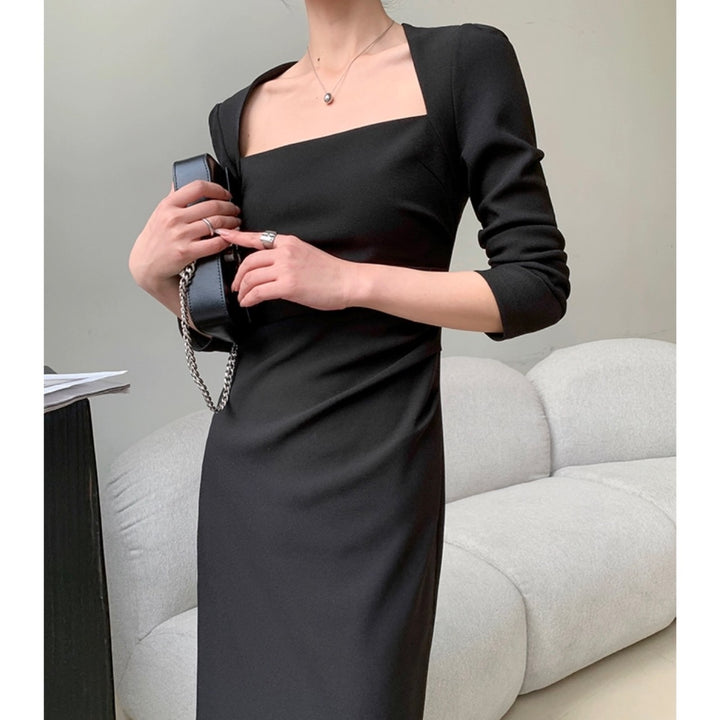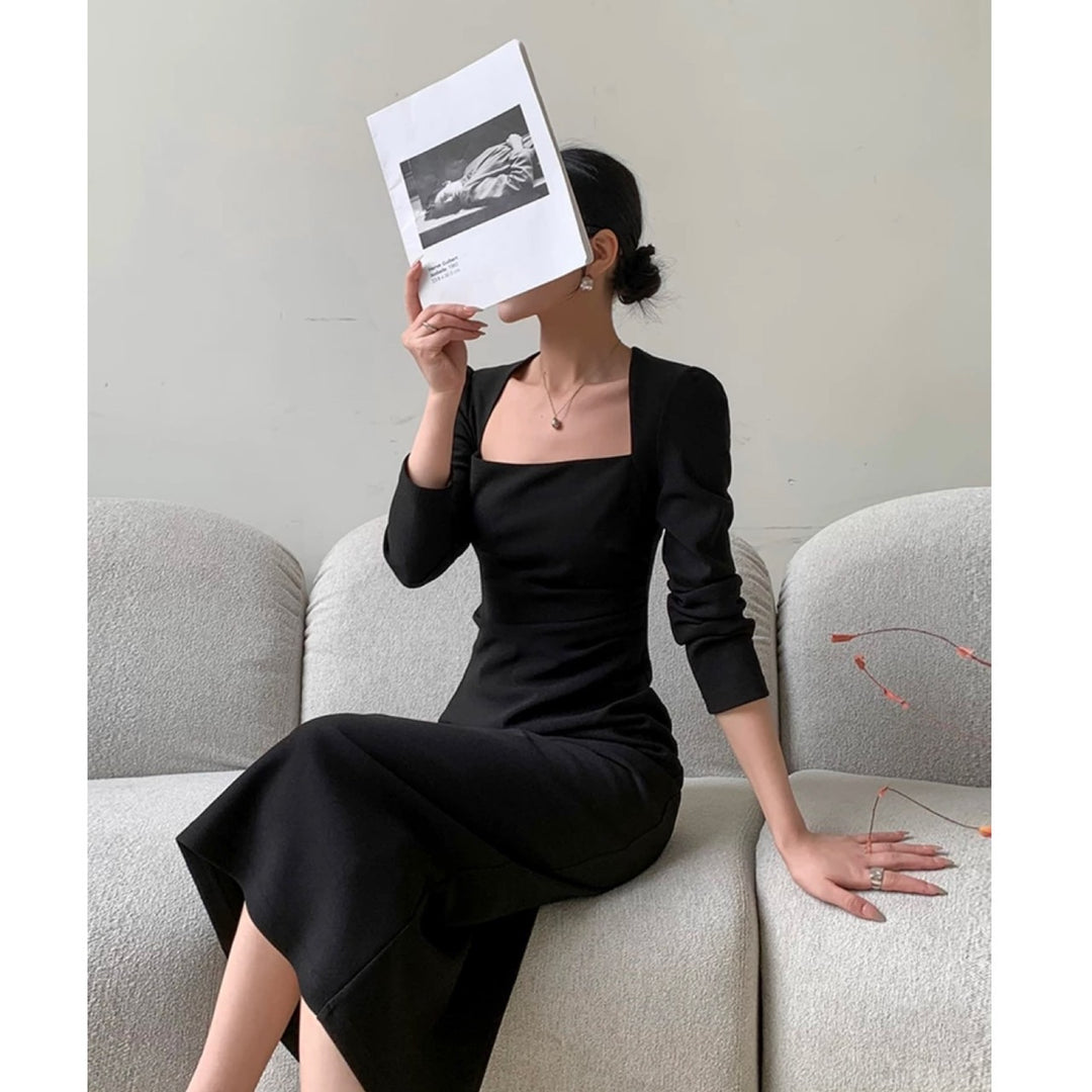 【Mブラック即日発送】スクエアネックタイトワンピース