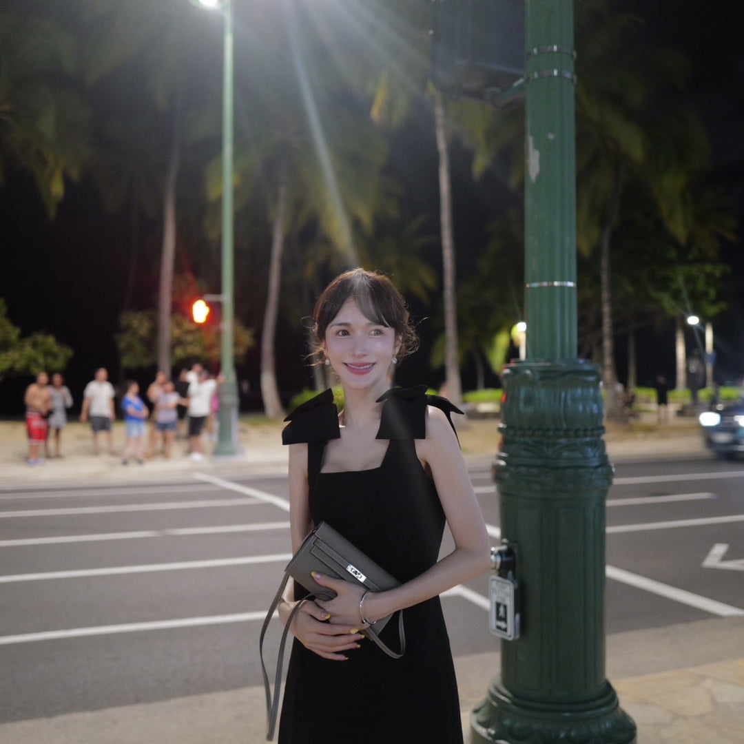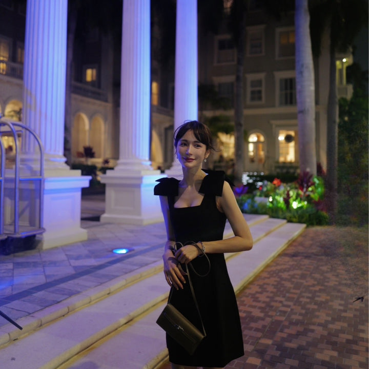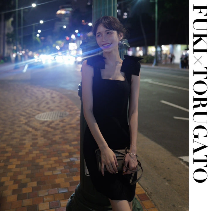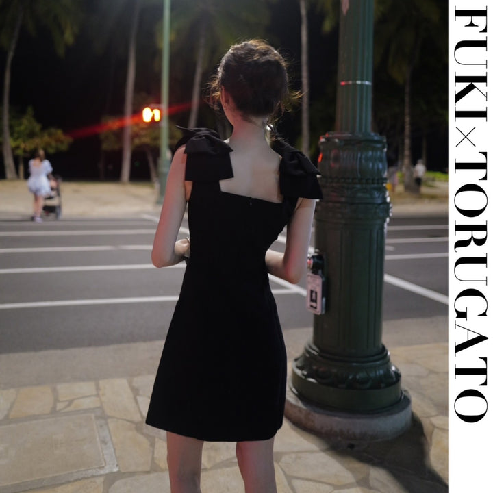 【S,Mブラック即日発送】リボンショルダーラインワンピース