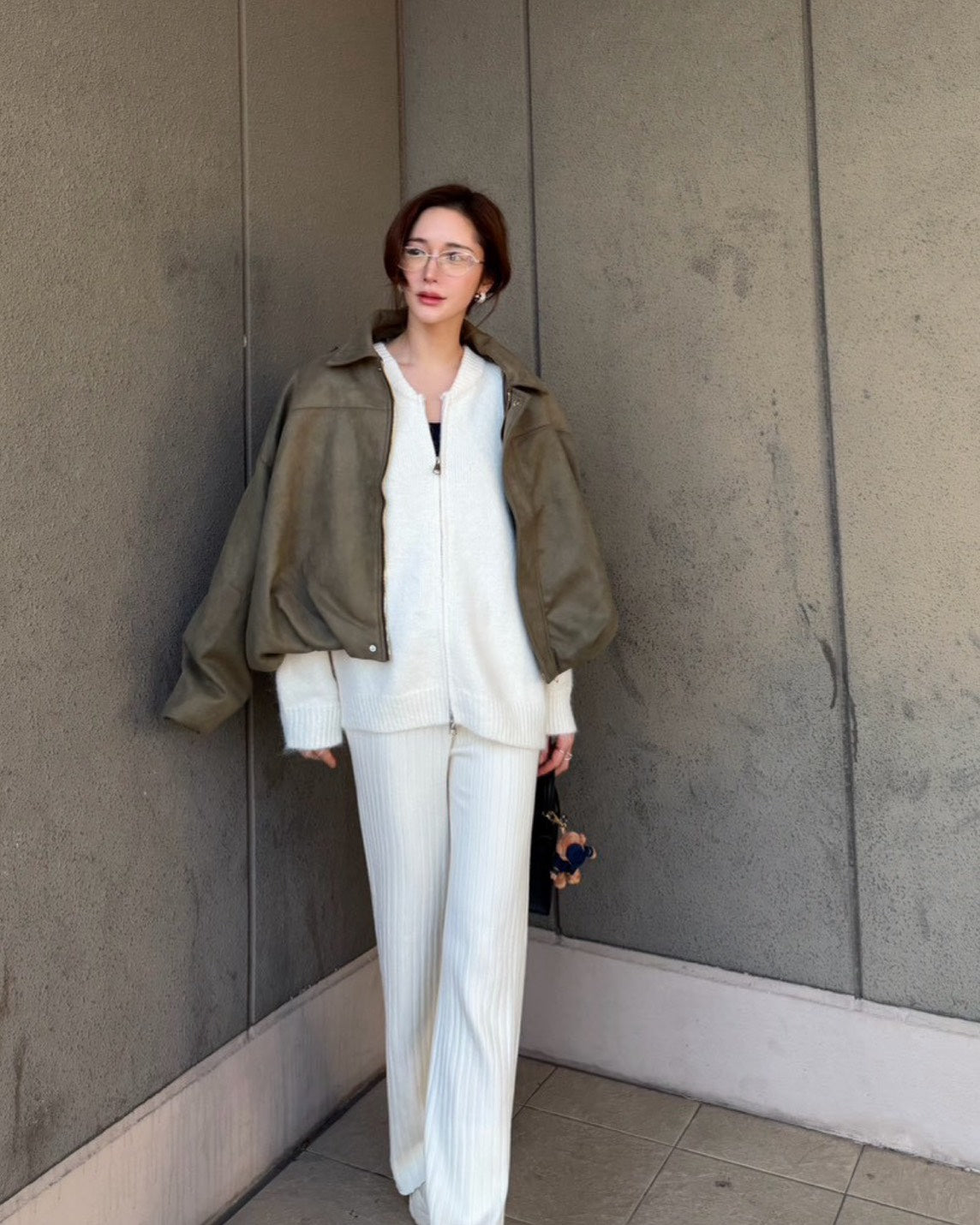 ※FUKIさんが着ているトップスはエアリーモヘアジップニットセットアップです。