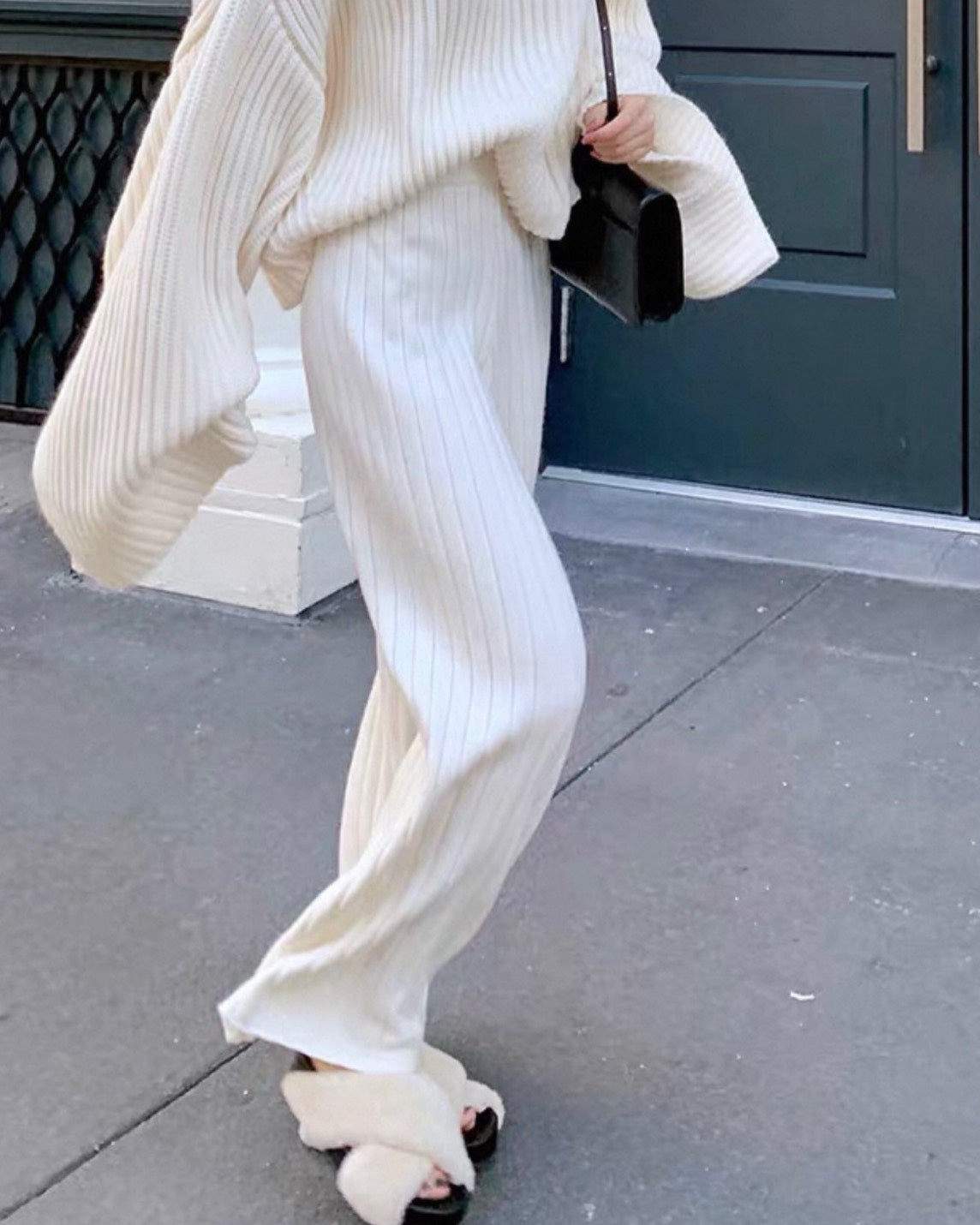 リブニットフレアパンツ