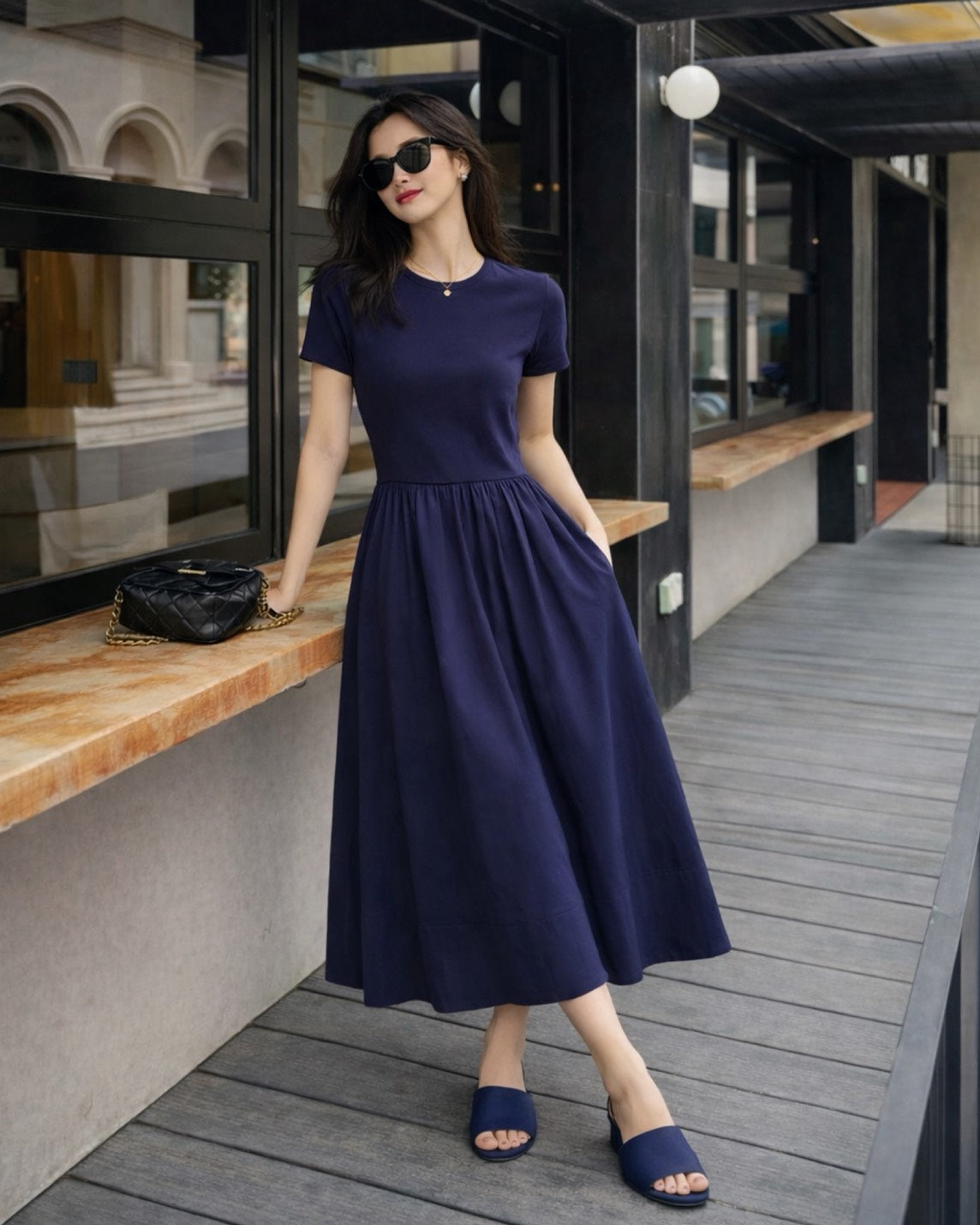 上品さと抜け感を両立した、シンプルながら計算された美シルエットワンピース。