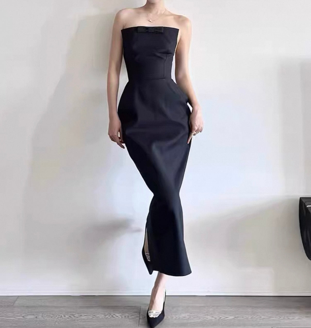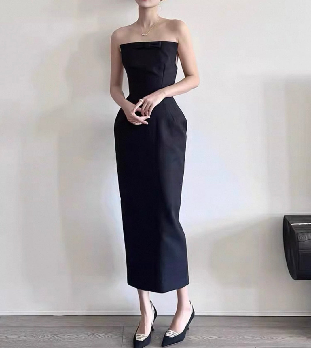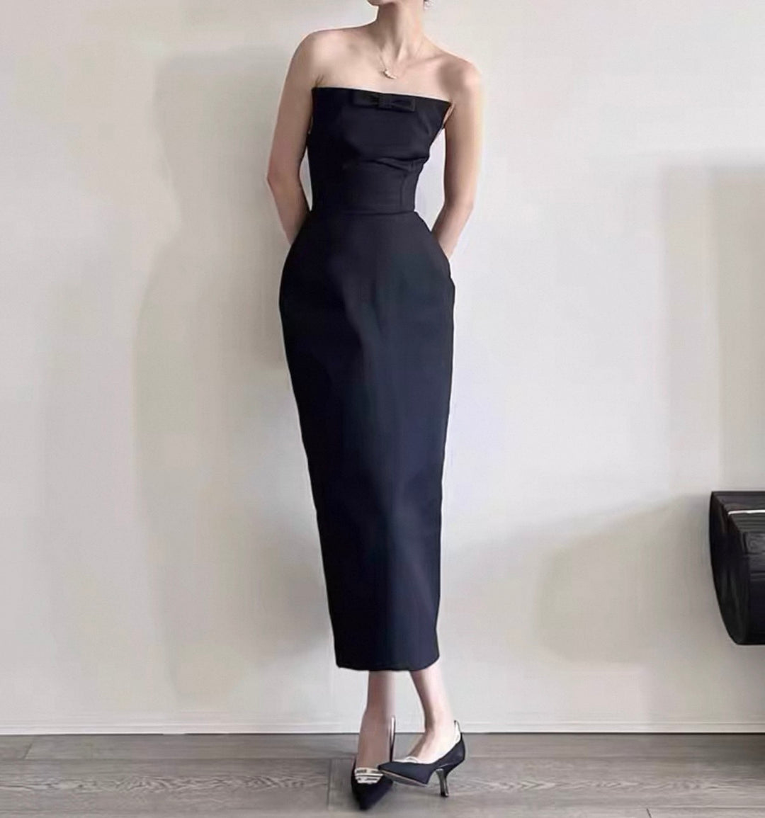 ウエストラインをしっかりマークし、タイトながらも足さばきの良いシルエットで、パーティーシーンやディナー、ラグジュアリーなホテルステイにも最適な一着です。