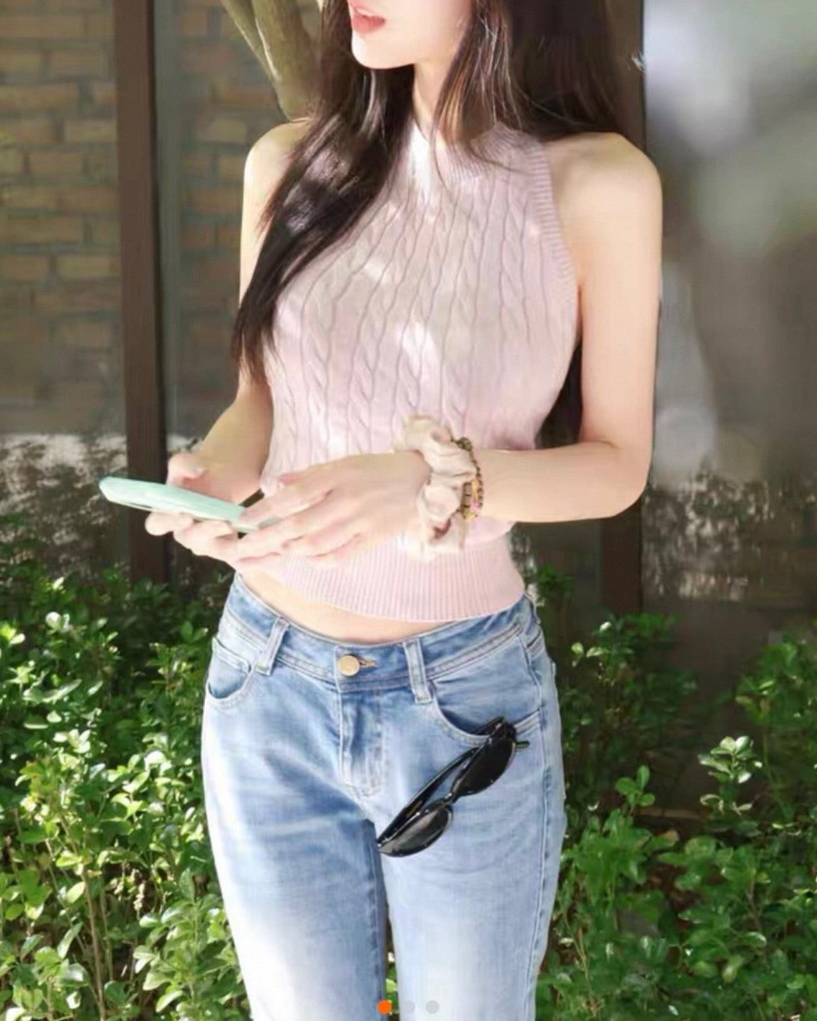 上品さと色気を兼ね備えた、バックオープン仕様のニットホルタートップス。